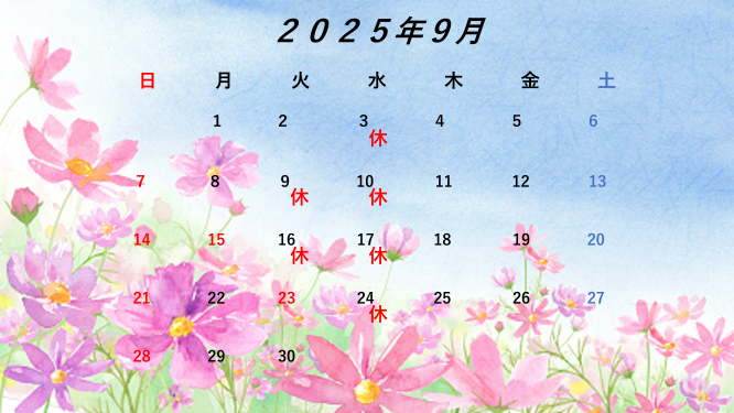 さて、今回は9月の営業カレンダーのご案内です🔔