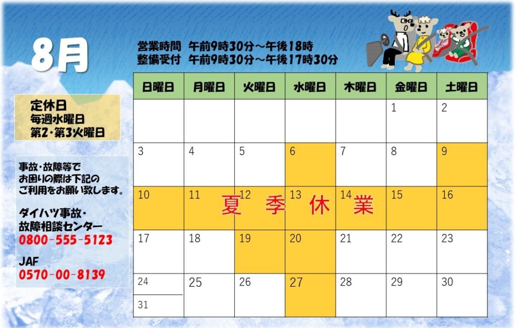 8月の営業日は下図の通りとなります👀