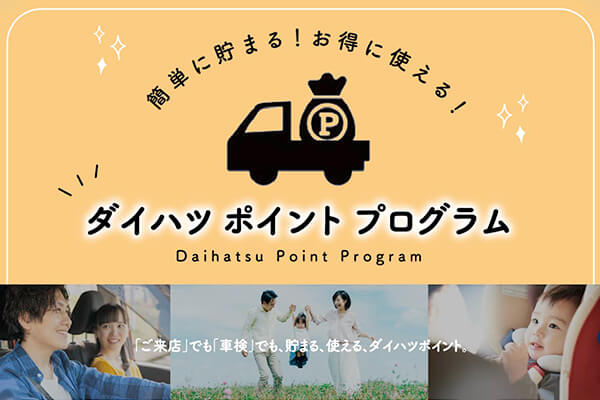 おクルマの試乗や、車検、点検などでポイントを貯めて、様々な商品と交換できるダイハツポート会員様限定サービスです。