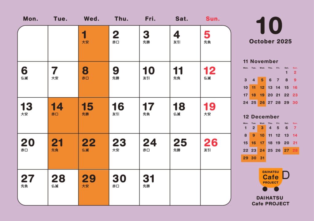 10月の営業日のご案内です
