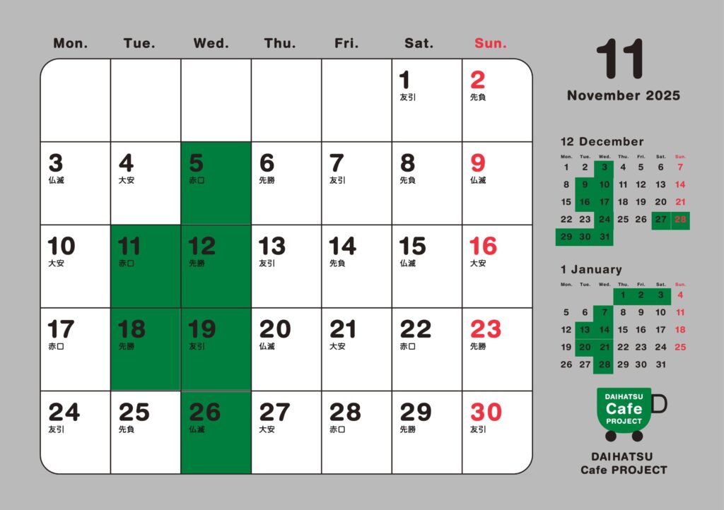 11月の営業日のご案内です