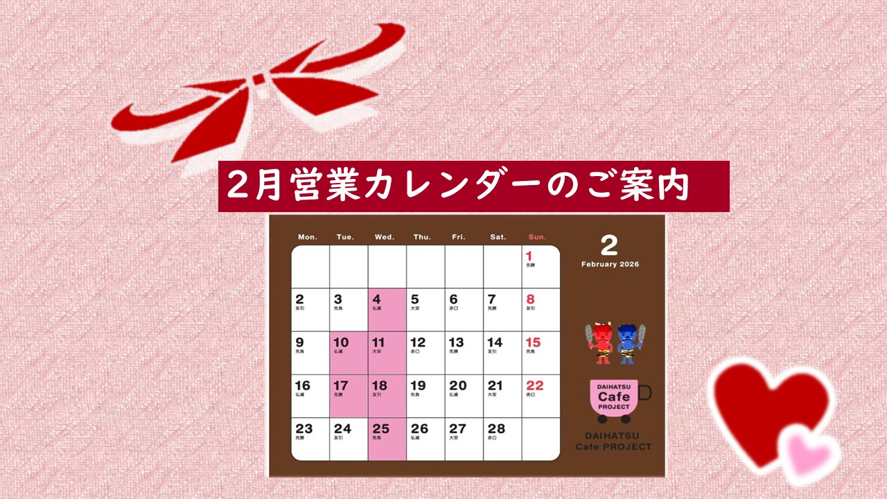 2月営業カレンダーのご案内
